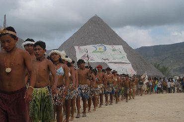 Índios desfilam na festa da homologação em Maturuca
